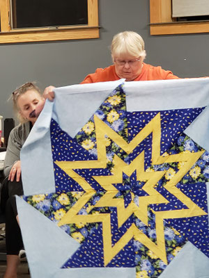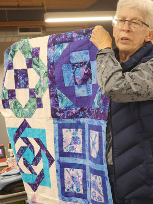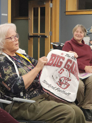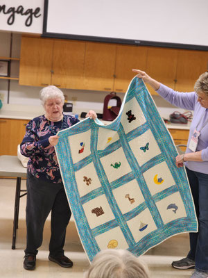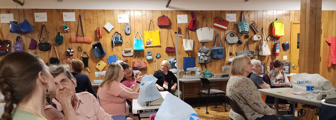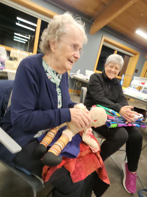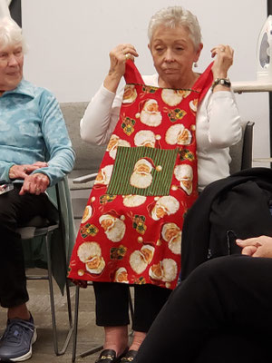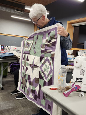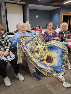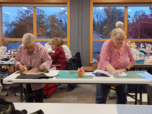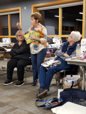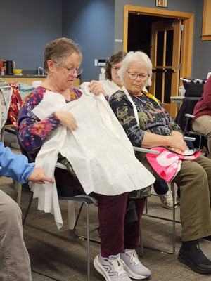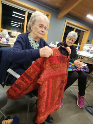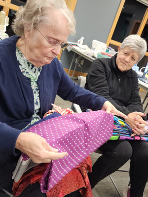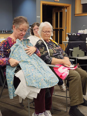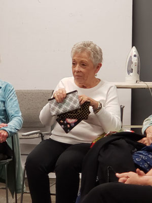 We loved seeing everyone's faces at our first in-person meeting since September 2020. We all got together for a social sew-in organized by Pam S. and Jo M. to make mittens to donate to Santa Claus Girls. Interested in participating? The patterns and more details can be found on our Patterns page.