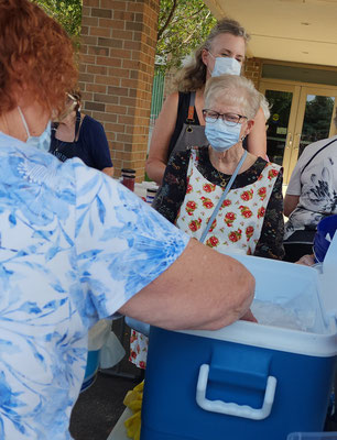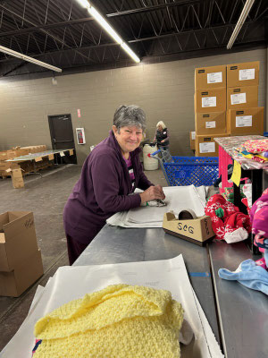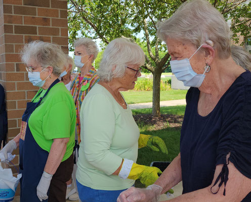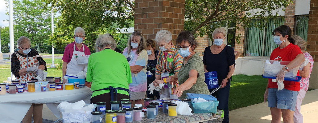 Fun and camaraderie filled the room at the 2021 GRASG Annual Picnic held at St. Paul Lutheran Church in Caledonia. A worker bee crew assembled kits, cut and sewed mittens for Santa Claus Girls. Socks were donated for the 'In the Image' shoe-giveaway for school age children. A dinner potluck brought in a few more ladies to share a fantastic potluck meal. Everyone agreed that the food was irresistibly delicious.