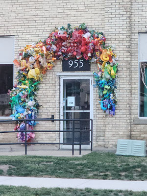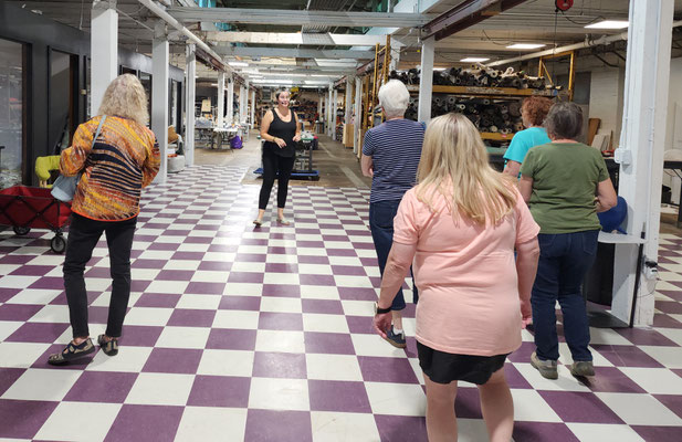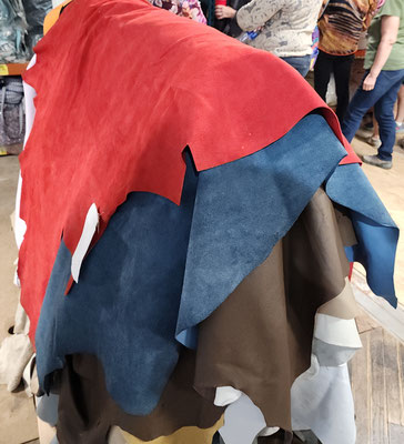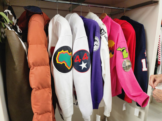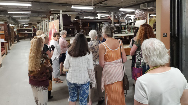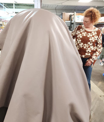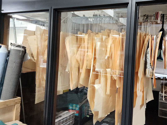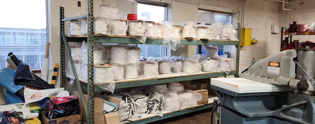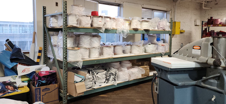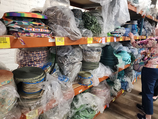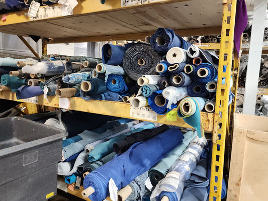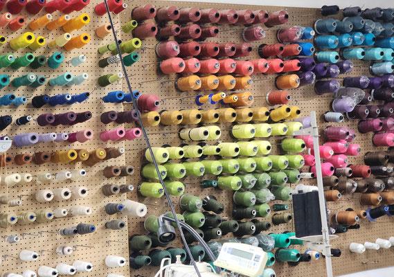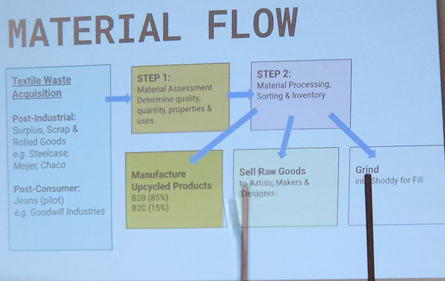 From the front door, to the work rooms and storage room, Public Thread is making a difference, keeping textile goods out of the landfill. They work with industrial over-runs and waste from places like Steelcase, Chaco and Goodwill, to deal with post consumer and industrial waste. They teach people industrial sewing and produce many repurposed things to be sold. They take waste and make beautiful quality merchandise. They use 90% of the overruns and waste they receive. They mostly only purchase hardware notions. The time wall shown below has samples of things they have produced and how they have expanded the use of the materials they receive. What an educational and fun experience!!