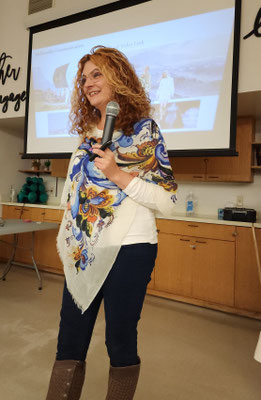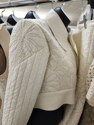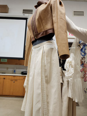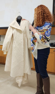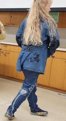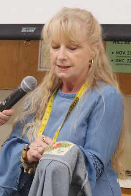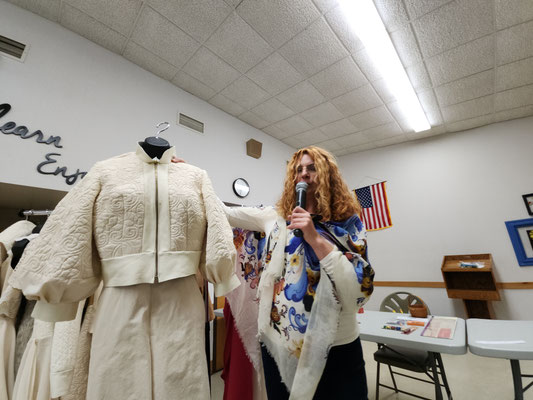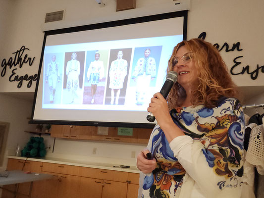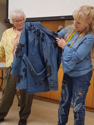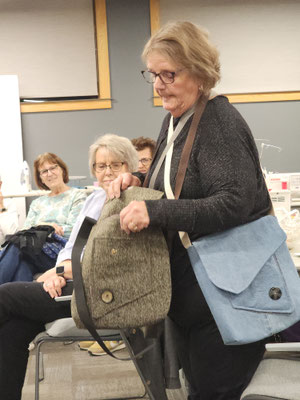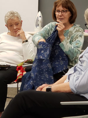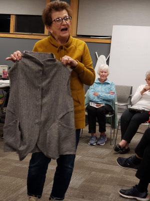 Jessica Rabbitt's demo included fabrics, digital patterns and the London Pants demo. GRASG's new document camera projected on the overhead screen.