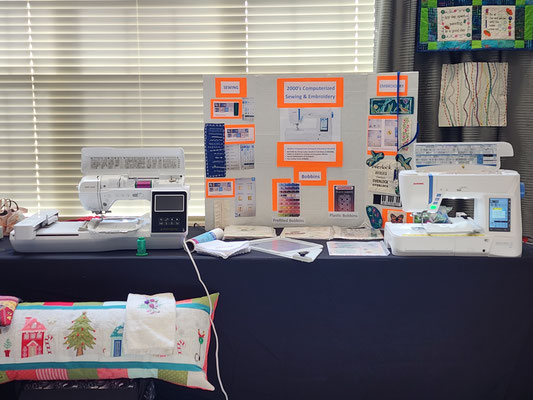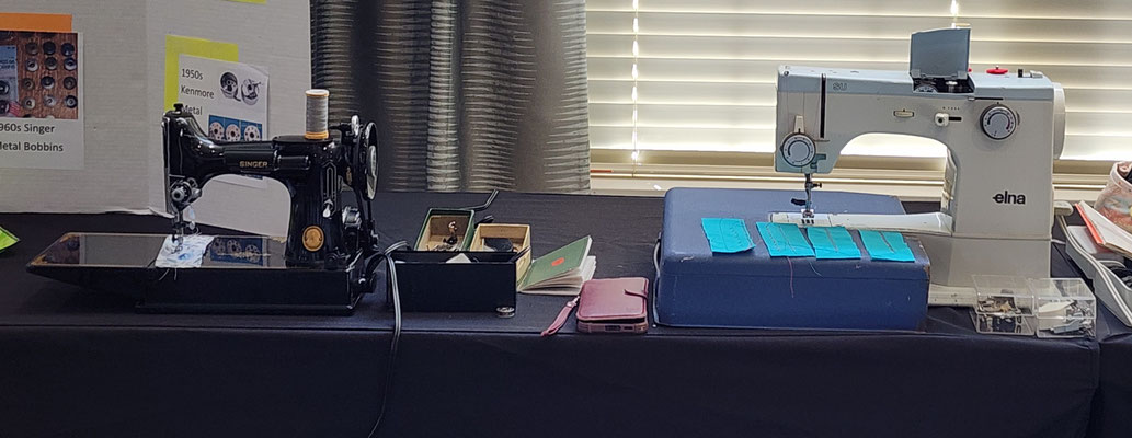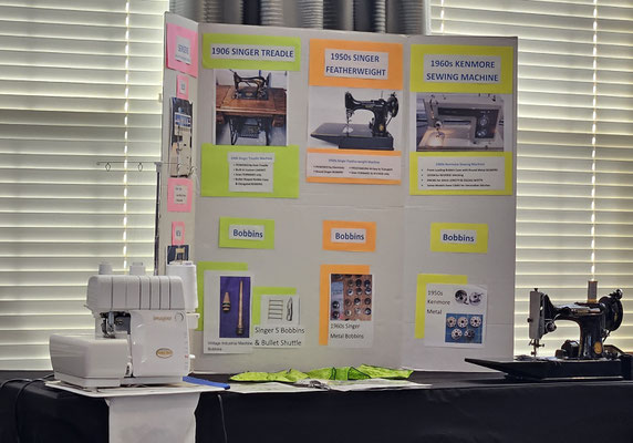 The display for the 'Evolution of Sewing Machines' presentation at Grand Village Retirement Home.